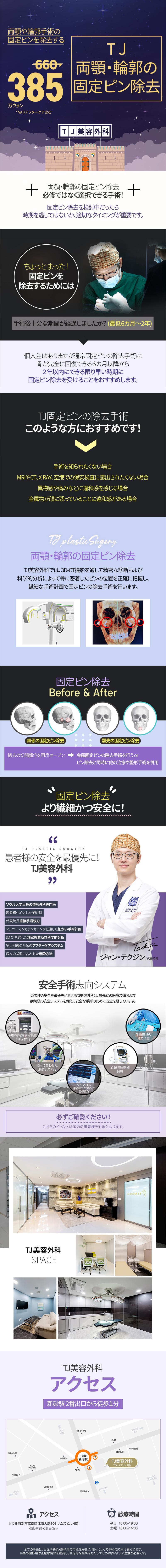 TJ美容外科では、3D-CT撮影を通して精密な診断および科学的分析によって骨に密着したピンの位置を正確に把握し、繊細な手術計画で固定ピンの除去手術を行います。